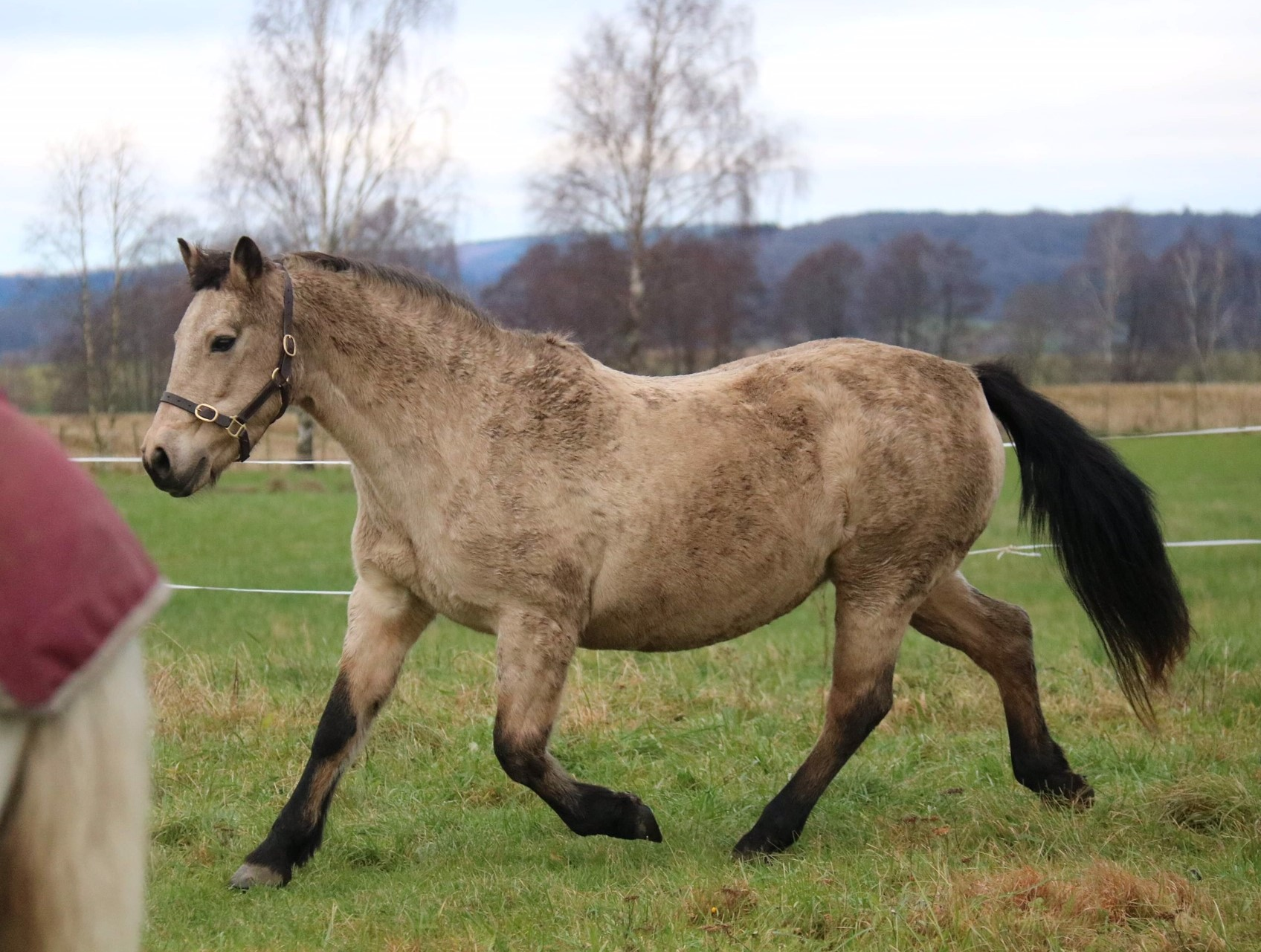 Blakehill Rolo (Cnocban Cassanova – Lofty Roisin) would become a broodmare but…. I am still riding her and enjoy it so much. She is like a really good mare, hard working, always try to do her best. Showed her once 2023 where she won her class and was awarded a golden medal. After that she went on to win the ridden class as well.